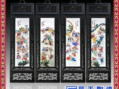 四、瓷板画样式多样,除了常见的长方形、正方形外,还有圆形、椭圆形、扇形、鸡心形、叶形等等,便于家居装饰,既可独立成体挂于客厅、书房,又可作家具的镶嵌之饰,或制成插屏或围屏等。